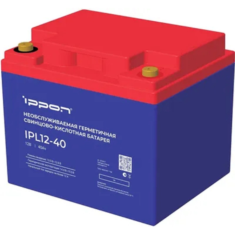 Аккумулятор Ippon IPL12-40 построен на основе свинцово-кислотной технологии с абсорбированным электролитом (AGM). Кислота иммобилизована в пористом сепараторе из стекловолокна, что обеспечивает рекомбинацию газов внутри корпуса и сводит к минимуму потерю воды.