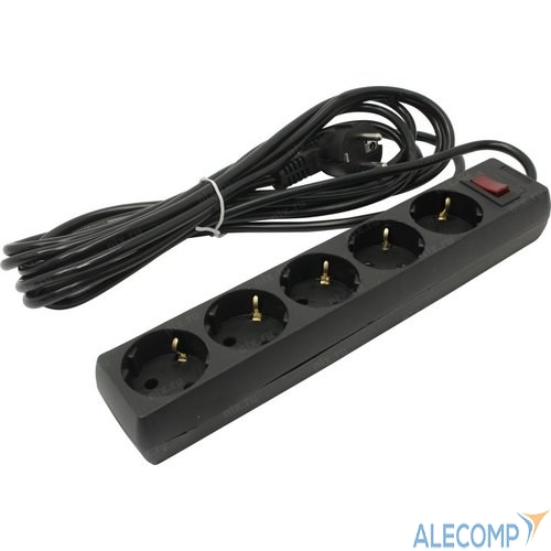Exegate EX279358RUS Удлинитель ExeGate EC-5-5B (5 розеток, 5м, евровилка, черный)