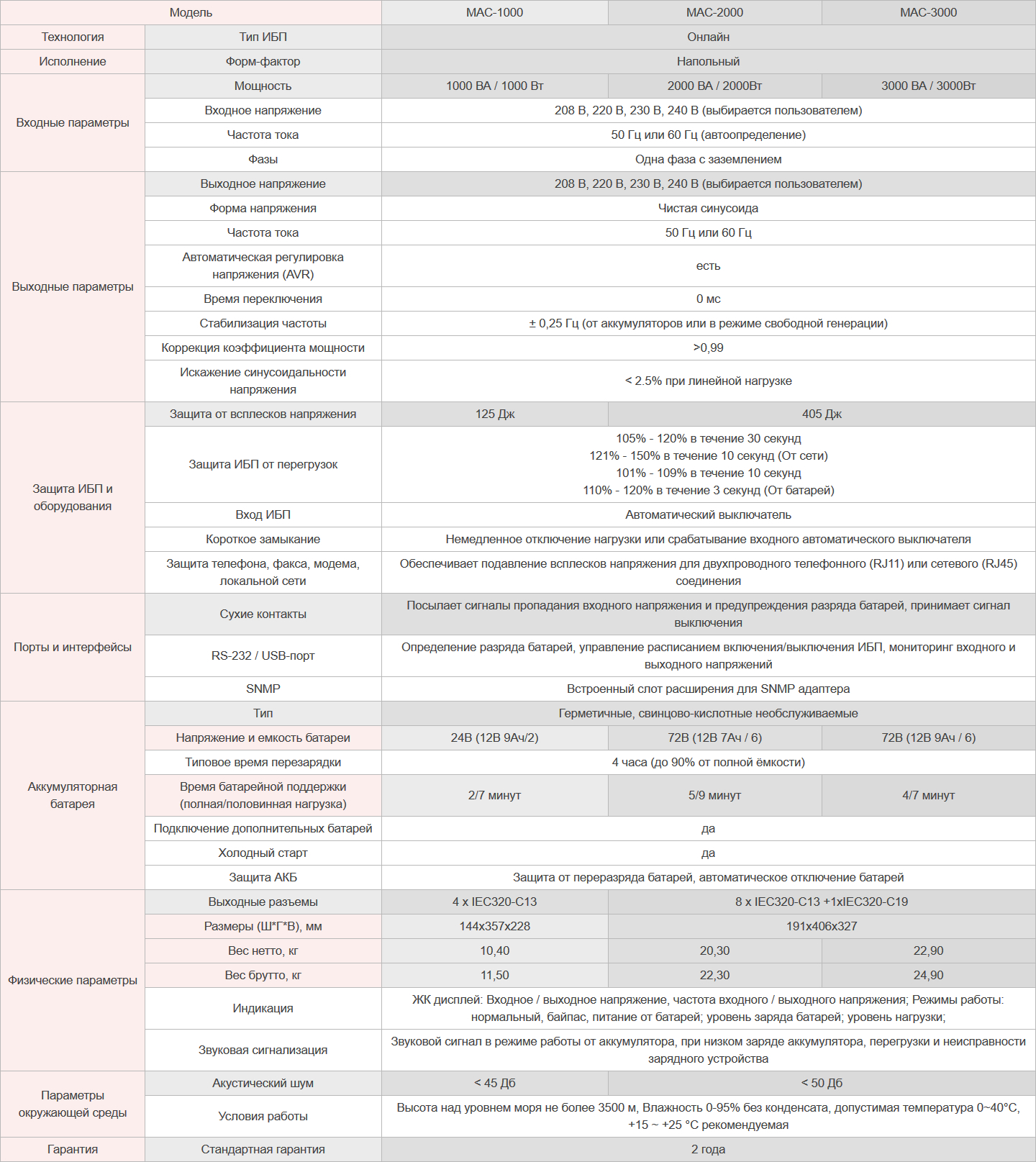 | Максимальная выходная мощность, Вт/ВА | 3000/3000 |