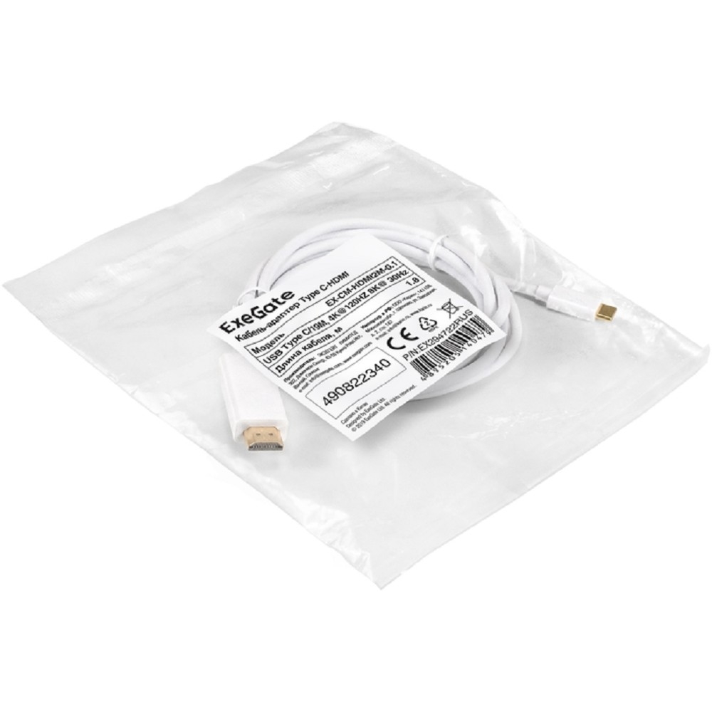 Exegate EX294722RUS Кабель-адаптер Type C-HDMI ExeGate EX-CM-HDMI2M-0.1 (USB Type C/19M, 4K@120HZ 8K@ 30Hz, 1,8м)