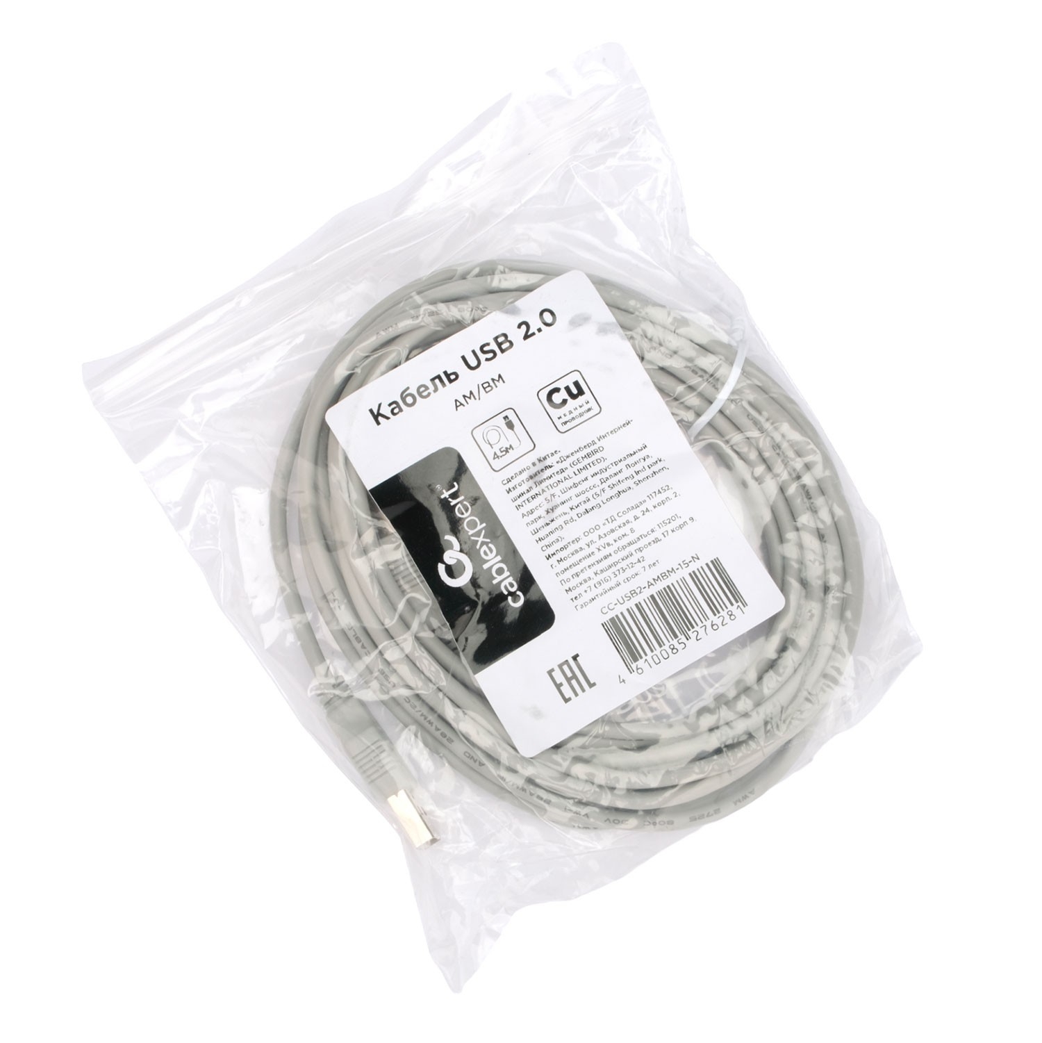 Готовы купить Cablexpert Кабель USB2.0 AM/BM, медь, Pro, 4.5м, серый, пакет (CC-USB2-AMBM-15-N)?