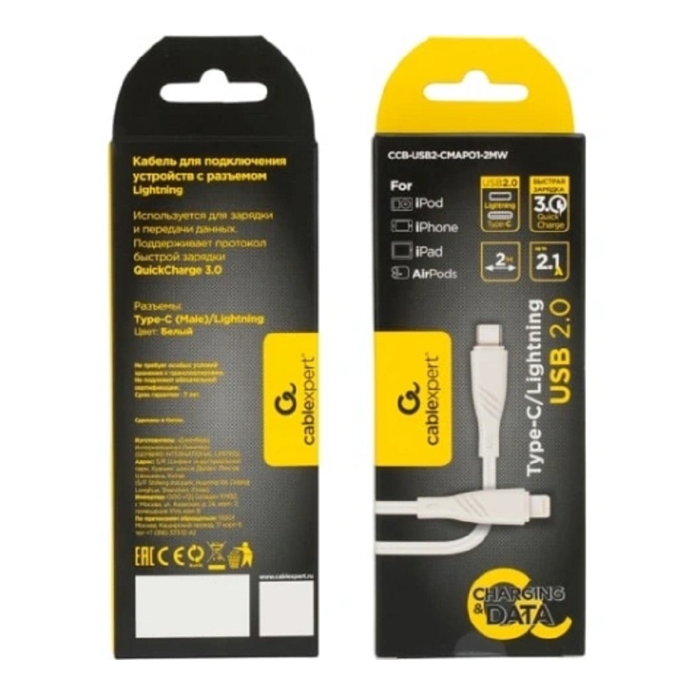 Cablexpert Кабель USB2.0 Lightning/Type-C, 2.1А, 20W,... код производителя: CCB-USB2-CMAPO1-2MW в наличии 25 шт, доставка 2-3 дня, цена 430 руб. НДС включен, оформить счет можно на сайте или по телефону +7 495 984-51-56. Доставка по Москве и РФ, возможен самовывоз. Изображение, цвет, комплектация, цена могут отличаться. Перед покупкой уточняйте всю информацию у менеджеров.