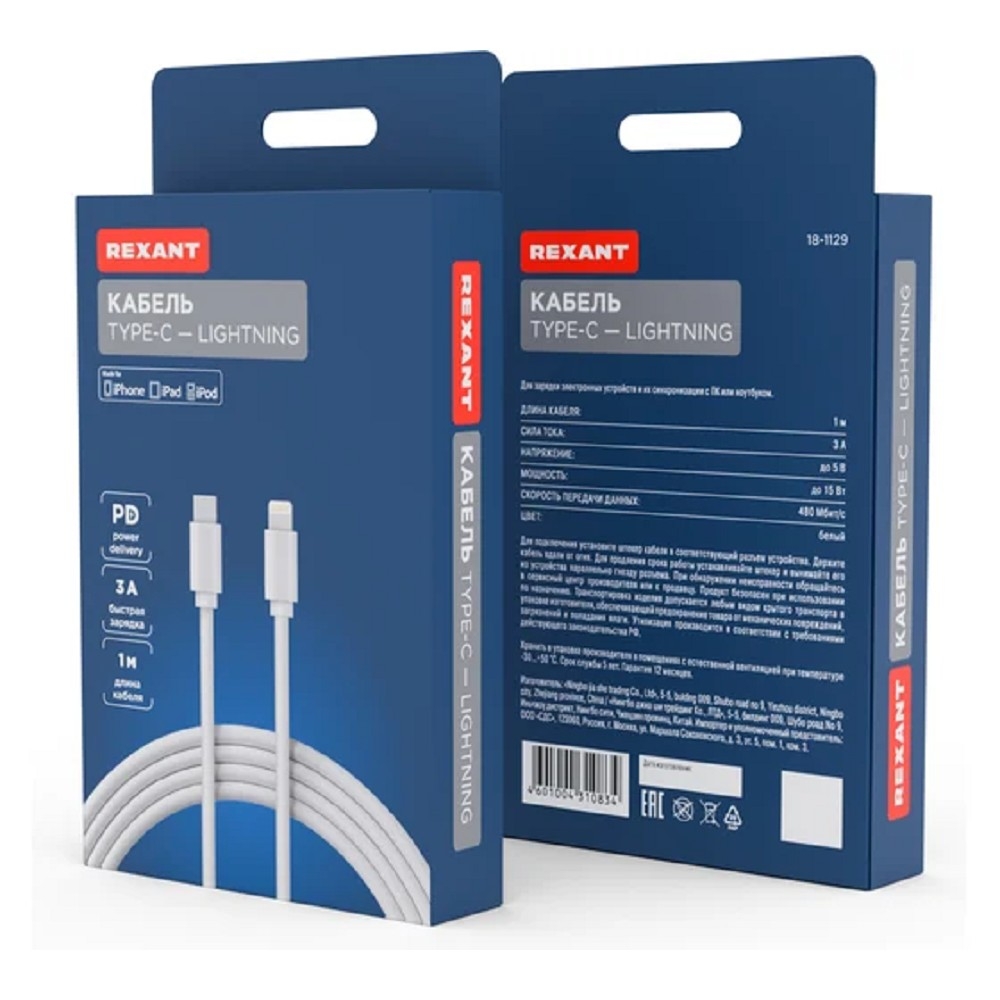 Чтобы купить Rexant (18-1129) Кабель Lightning – Type-C 3A, 1м, ПВХ, белый.
