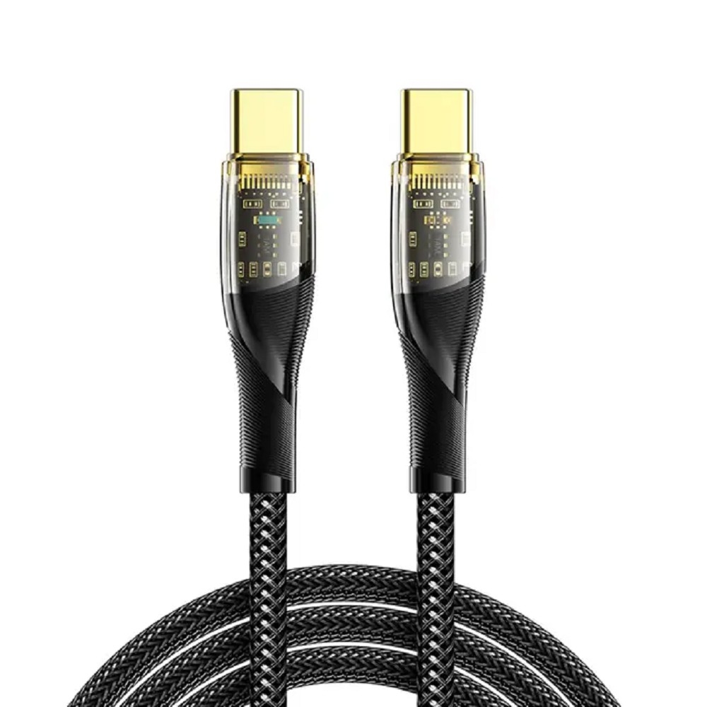 Rexant (18-7092) Кабель Type-C – Type-C, 5А, 100W, 1м, в черной нейлоновой оплетке со световой индикацией