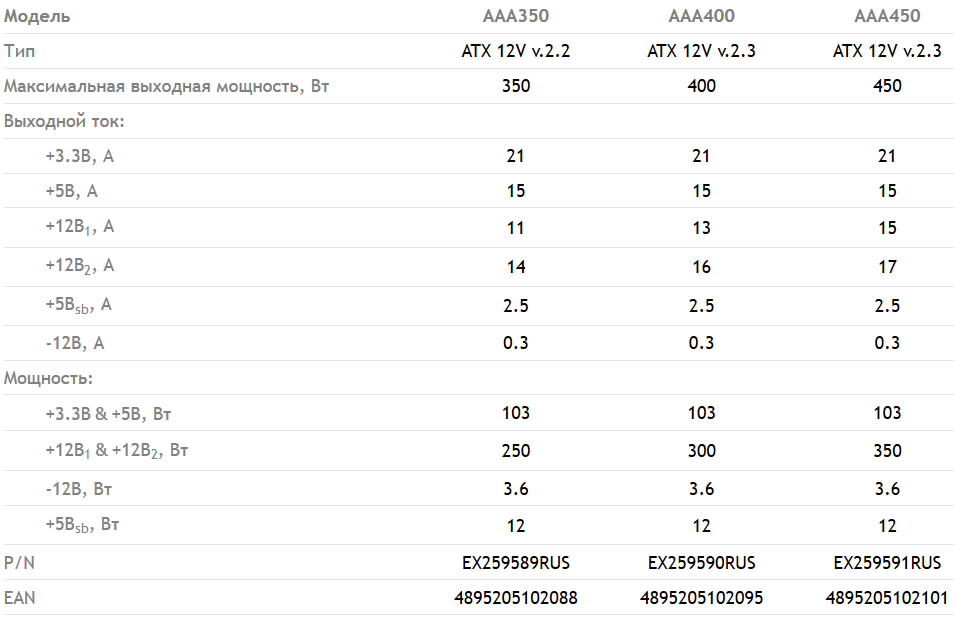 | 20+4 pin ATX | 1 (4-pin могут отстегиваться при необходимости) |
