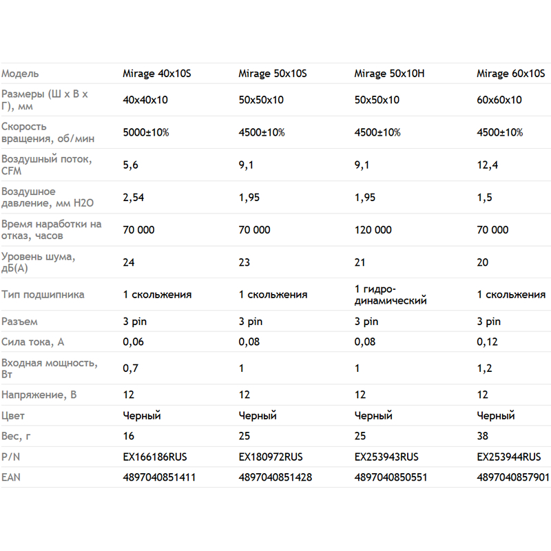 Вентилятор для видео Exegate 5010M12H (Mirage 50x10H, 4500 об./мин., 3pin) EX253943RUS