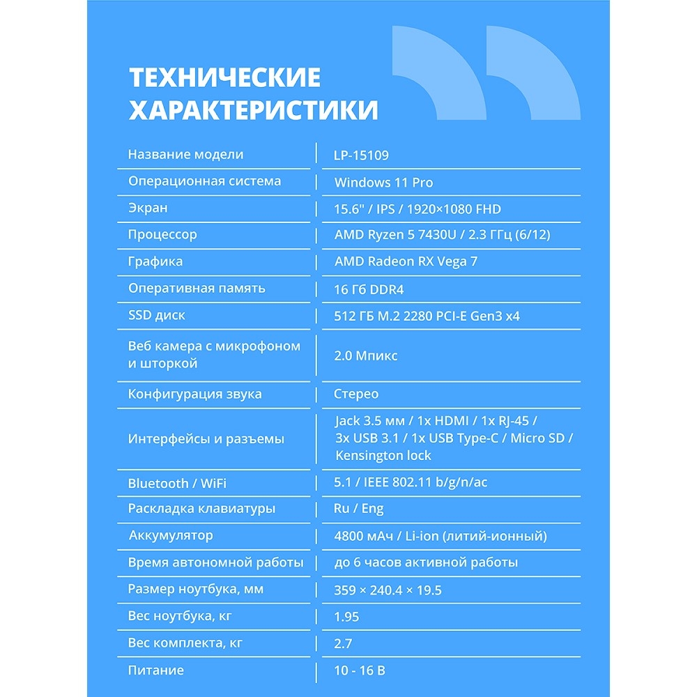 | Процессор ноутбука | AMD Ryzen 5 |