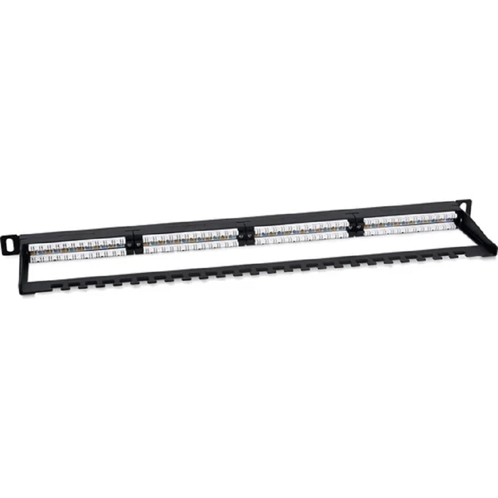 Cabeus PLHD-24-Cat.5e-Dual-180-0,5U Патч-панель высокой плотности 19" (0,5U), 24 порта RJ-45, категория 5e, Dual IDC,180 градусов, с задним кабельным организатором