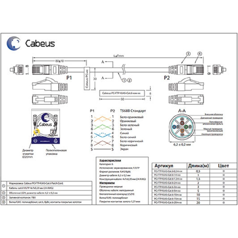 | Модель | PC-FTP-RJ45-Cat.6-1.5m-LSZH |