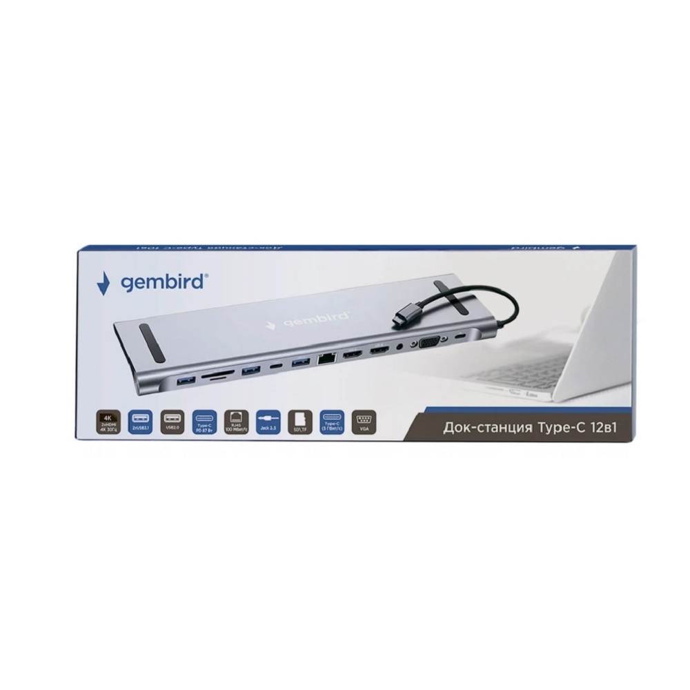Чтобы купить Gembird Док-станция Type-C,12в1: 2xUSB3.1,USB2.0, RJ45,PD87W, Jack3.5, SD/TF, 2xHDMI, VGA,Type-C (UHB-D6).