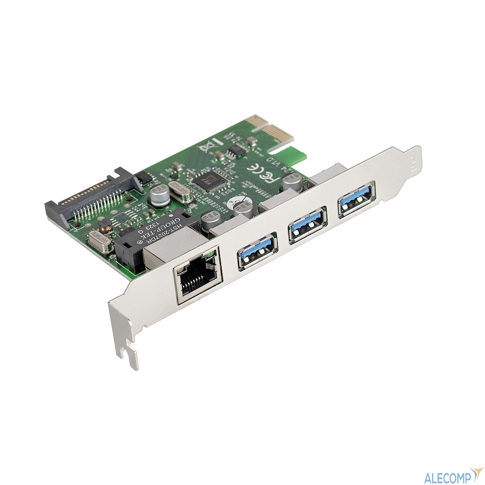 Exegate EX283714RUS Контроллер сетевой EXE-361 PCI-E 2.0, 3*USB3.0 ext + LAN UTP 1000Mbps, раз.доп.пит.OEM)
