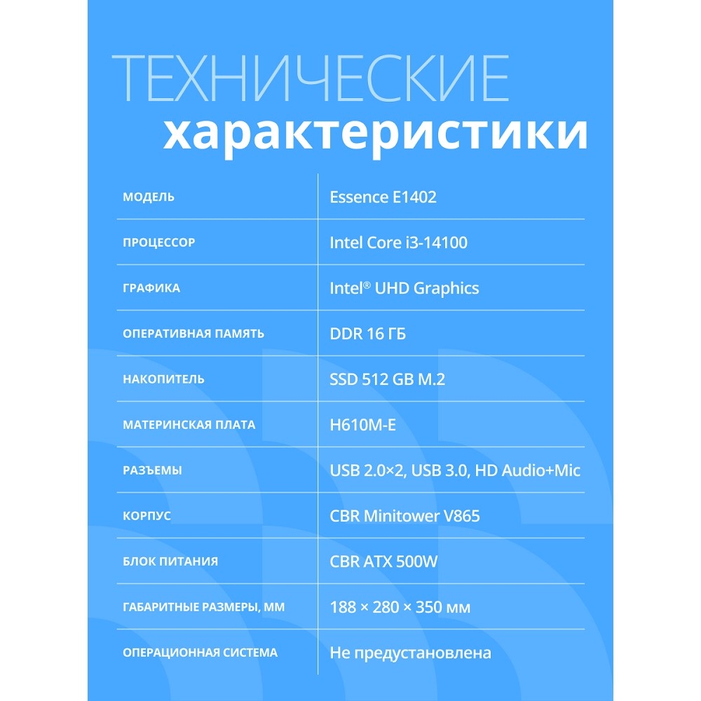 | Размер корпуса | Mini Tower |