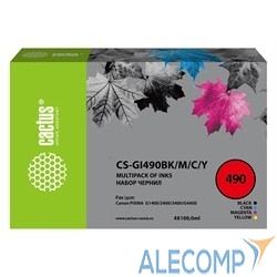 Чернила Cactus CS-GI490BK/M/C/Y голубой/пурпурный/желтый/черный набор 4x100 мл для Canon Pixma G1400/G2400/G3400