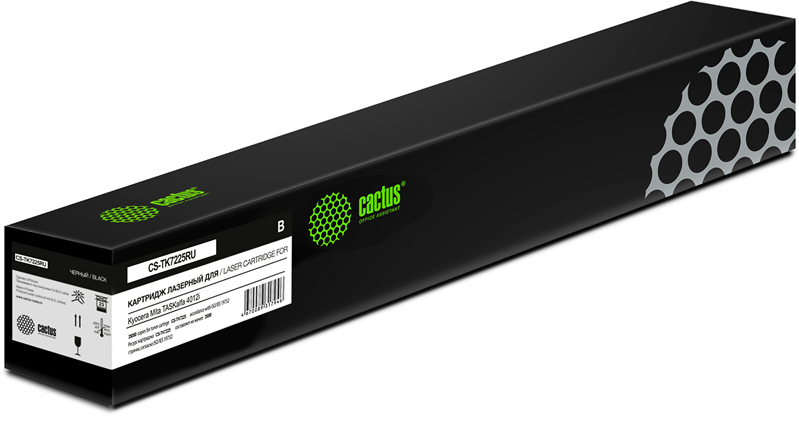 Картридж CS-TK7225RU является аналогом оригинального тонера Kyocera TK-7225. Ресурс в 35000 страниц рассчитан при 5% заполнении листа формата A4. Совместимость строго ограничена указанными моделями оргтехники.