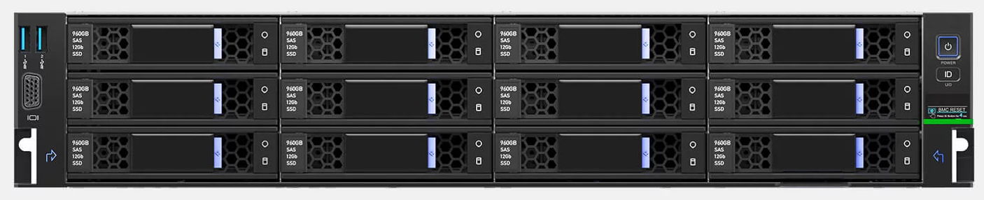 | Фронтальная корзина | 12 × LFF SAS/SATA (установлено) / 3×4 SAS/SATA или SAS/SATA/NVMe (опционально) |