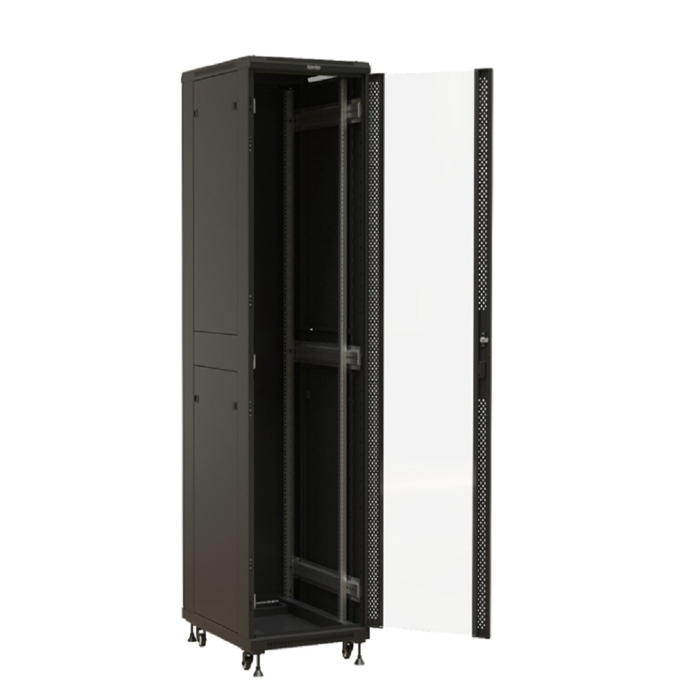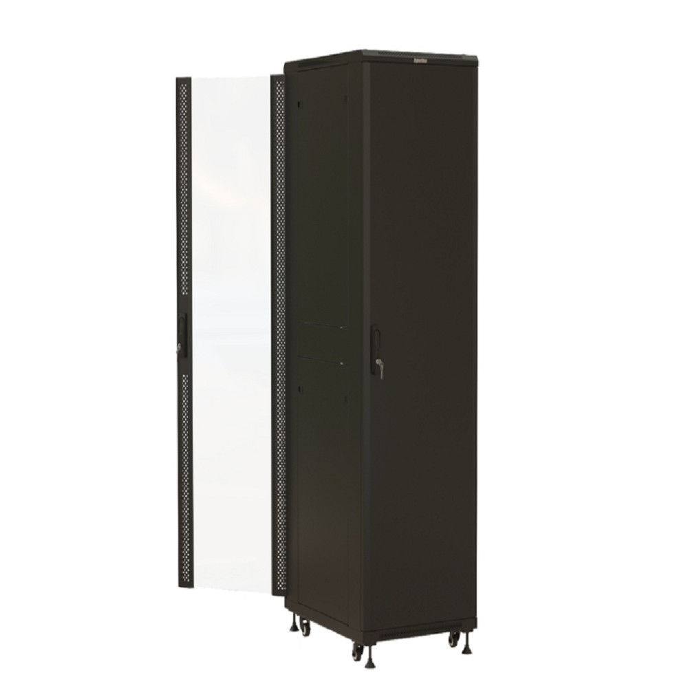 Чтобы купить Шкаф серверный Hyperline (TTBR-4261-AS-RAL9004) напольный 42U 600x1000мм пер.дв.стекл задн.дв.спл.стал.лист 2 бок.пан. 800кг черный 910мм 2055мм IP20 сталь: