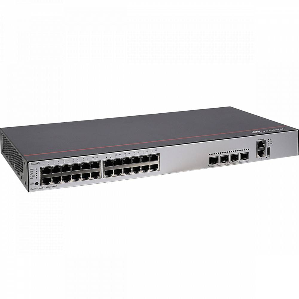 Коммутатор Huawei S5735-L24P4X-A1, 24 порта 10/100/1000BASE-T, 4 порта 10GE SFP+