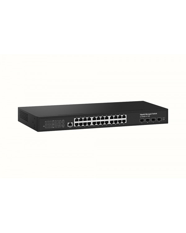 Управляемый L3 коммутатор Gigabit Ethernet/ Управляемый L3 коммутатор Gigabit Ethernet на 24xRJ45 4x10G SFP Uplink. Порты: 24 x GE 10/100/1000Base-T 4 x 10G SFP Uplink, Консольный порт, Уровень управления L3 Full managed, Поддержка Jumbo Frame 10K, IGMP Snooping, Монтаж в 19" стойку, крепление в комплекте. Встроенная грозозащита 3kV на порт. Питание: AC90-253V 410W. Встроенный БП. Монтаж в 19 - дюймовую стойку, крепление в комплекте. Размеры ШхВхГ: 440x45x290мм. Рабочая температура