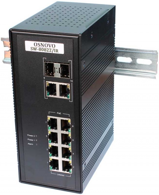 Данная модель, с кодом SW-80822/IR, оптимальна для проектов, где требуется купить OSNOVO Промышленный гигабитный PoE коммутатор на 10 портов с балансом цены, мощности и гибкости конфигурации.