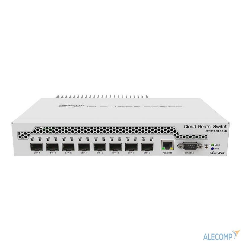 Mikrotik CRS309-1G-8S+IN Коммутатор 8 SFP+, dual-core 800MHz CPU, 512MB RAM, POE, RS232 serial port — готовое решение для корпоративных клиентов, наращивающих сетевую инфраструктуру. Для оптовых заказов предоставляются специальные условия.