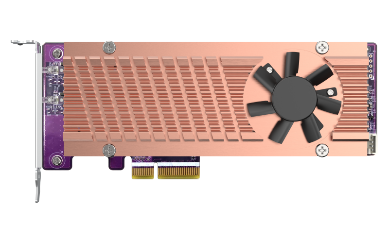 QM2-2P-244A QNAP QM2-2P-244A Dual M.2 22110/2280 SATA SSD expansion card (PCIe Gen2 x2), Low-profile bracket pre-loaded, Low-profile flat and Full-height are bundled (shorter version to support TVS-x82/TS-x77 PCIe slot 2 & slot 3)
