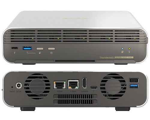 Сетевой RAID-накопитель QNAP TBS-h574TX-i3-12G 5-bay E1.S or M.2 2280 PCIe NVMe, i3-1320PE 8C4P 4E/12T up to 4.50GHz, 12 GB RAM, 1 x 10 GBASE-T, 2xUSB 3.2 Gen 1 port, 1xUSB 2.0 port, HDMOutput