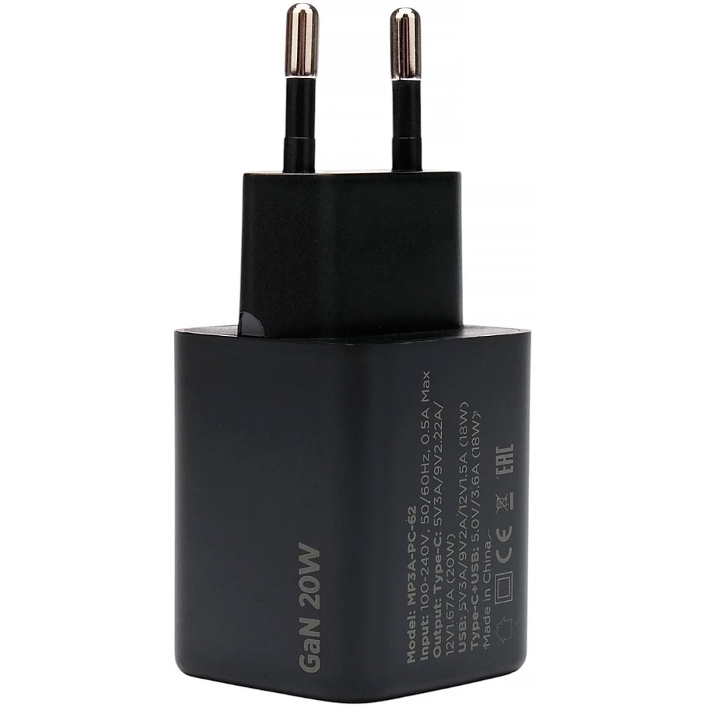 Cablexpert зарядное устройство 20Вт GaN, 3А, QC4.0/PD, 1xUSB, 1xType-C, черный, пакет (MP3A-PC-62)