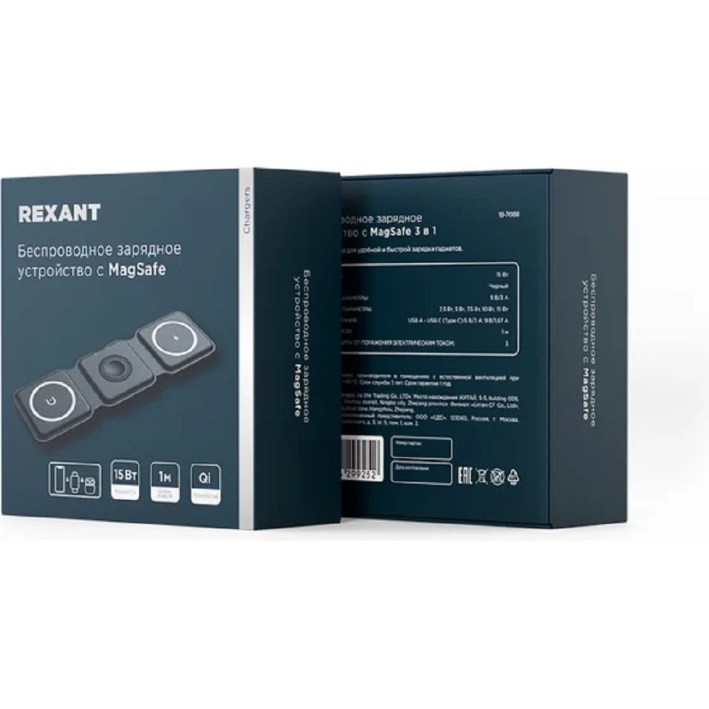 Rexant (18-7088) Беспроводное зарядное устройство с MagSafe 3в1, Qi, 15W, черный